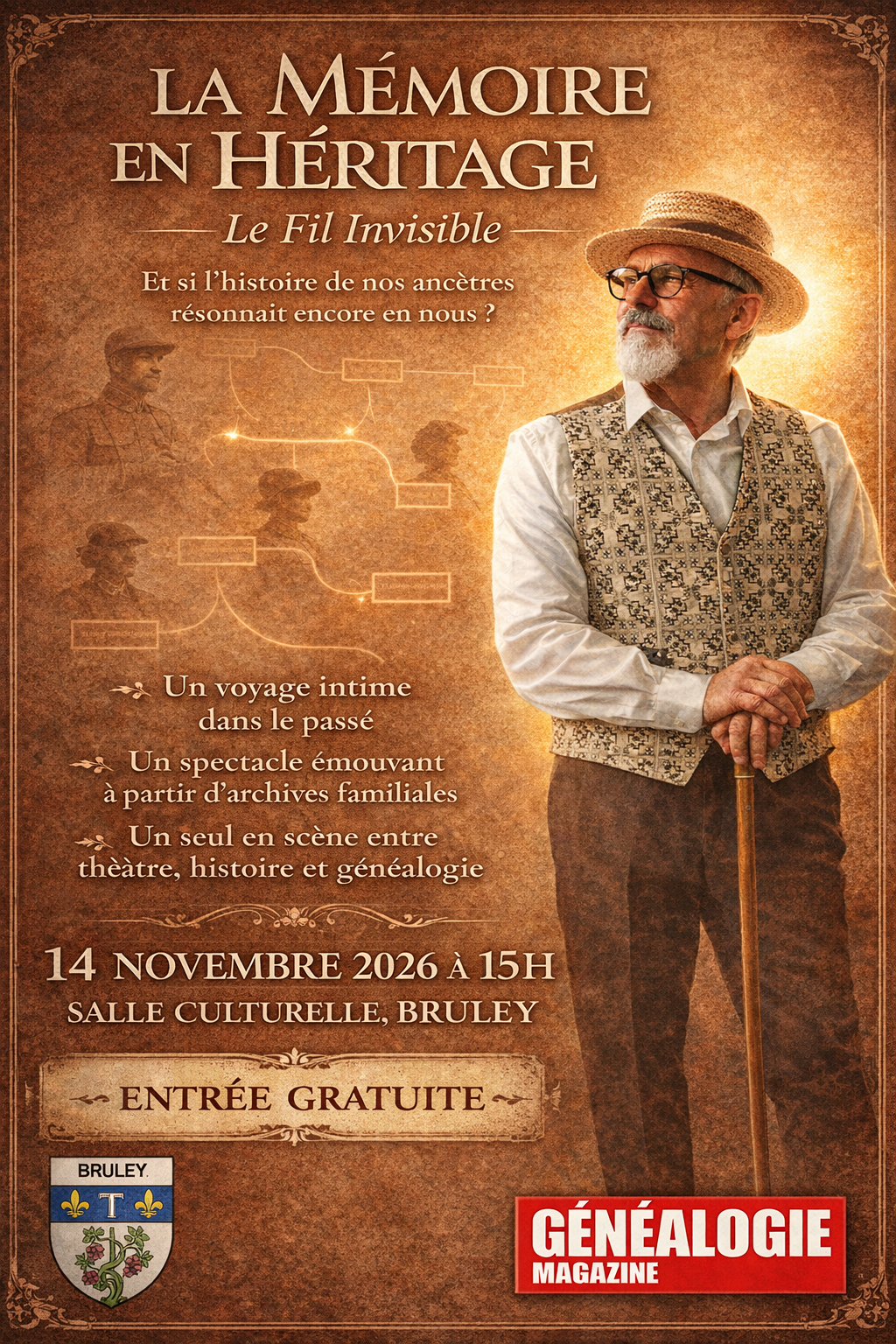 Nouveau spectacle – La Mémoire en Héritage – Le Fil Invisible le 14 novembre à 15 h à Bruley (54)
